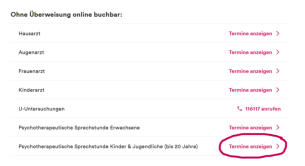 Besuchen Sie die Website, die App 116 117 oder buchen Sie per Telefon unter 116 117 einen Termin. Hier werden Ihnen Erstgespräche bei